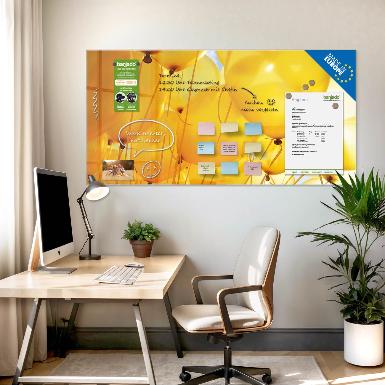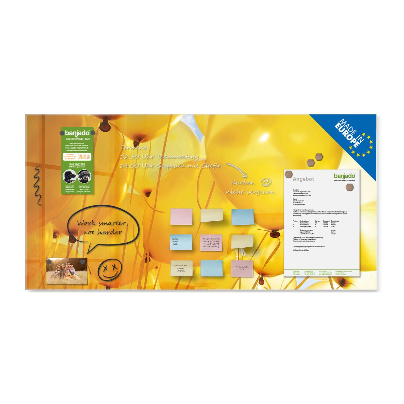 Glas Magnettafel im Querformat Motiv Gelbe Luftballons