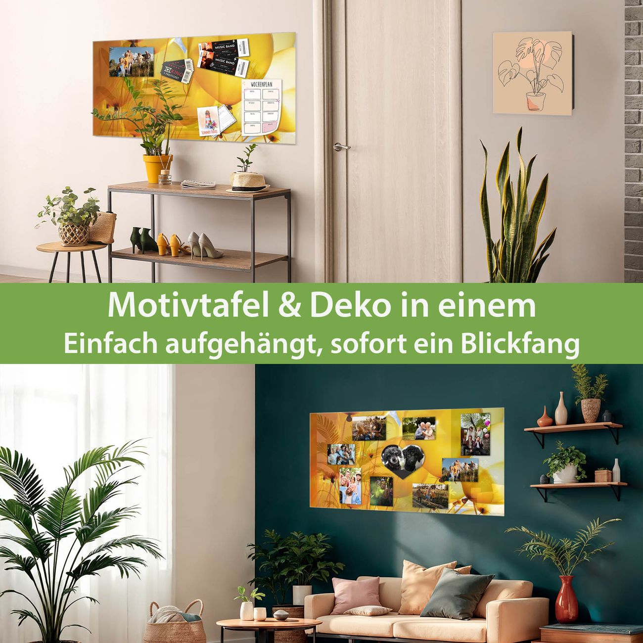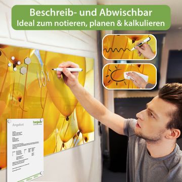 Die banjado Glas Magnettafel mit dem Motiv Motiv Gelbe Luftballons verbindet Funktionalität mit Stil. Sie ersetzt das Zettelchaos durch klare Strukturen und bringt dabei eine warme, natürliche Atmosphäre in Ihr Zuhause. Ob im Büro, in der Küche oder im Eingangsbereich - dieses Design-Board zieht Blicke an und sorgt für Ordnung mit Charakter.