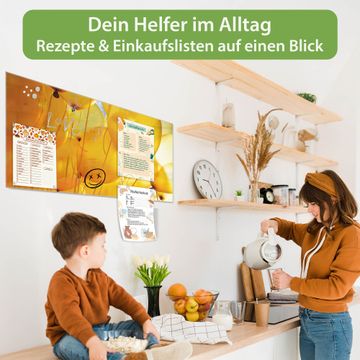Auf der glatten Glasoberfläche lassen sich Termine, Rezepte oder Notizen ganz einfach mit Kreidestiften festhalten und rückstandslos entfernen. Starke Neodym-Magnete halten Ihre wichtigsten Erinnerungen sicher an Ort und Stelle. So entsteht Ihre ganz persönliche Ideenwand - jeden Tag neu.