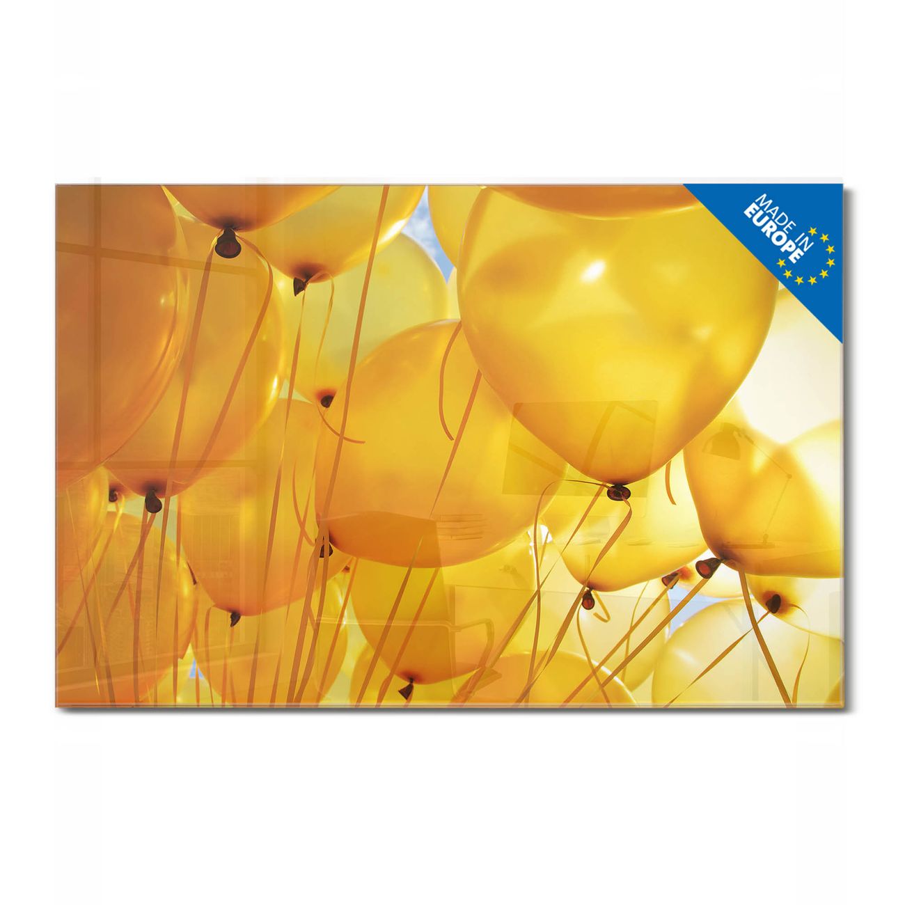 Glas Magnettafel im Querformat Motiv Gelbe Luftballons