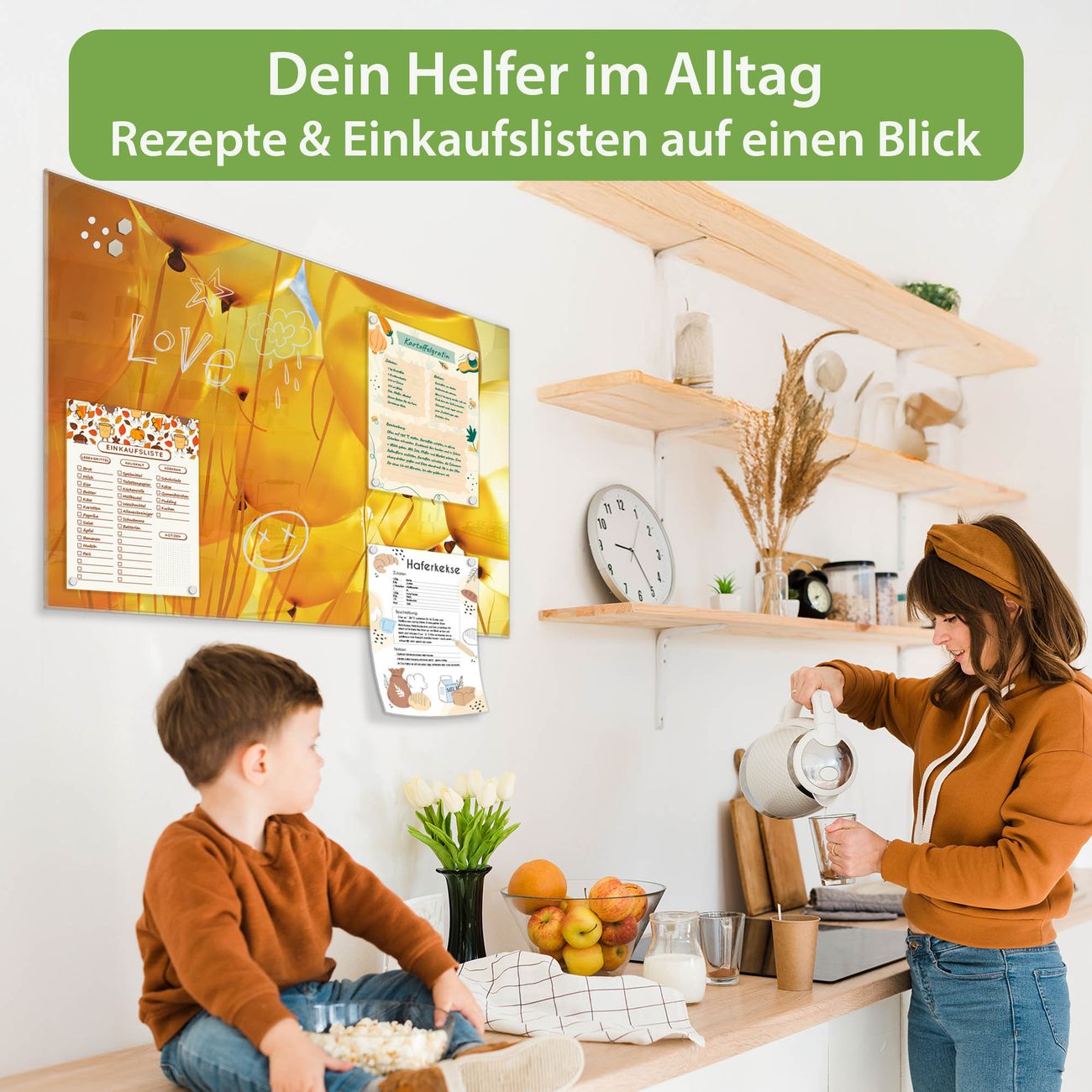 Auf der glatten Glasoberfläche lassen sich Termine, Rezepte oder Notizen ganz einfach mit Kreidestiften festhalten und rückstandslos entfernen. Starke Neodym-Magnete halten Ihre wichtigsten Erinnerungen sicher an Ort und Stelle. So entsteht Ihre ganz persönliche Ideenwand - jeden Tag neu.