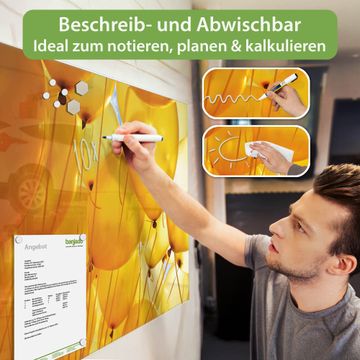Die banjado Glas Magnettafel mit dem Motiv Motiv Gelbe Luftballons verbindet Funktionalität mit Stil. Sie ersetzt das Zettelchaos durch klare Strukturen und bringt dabei eine warme, natürliche Atmosphäre in Ihr Zuhause. Ob im Büro, in der Küche oder im Eingangsbereich - dieses Design-Board zieht Blicke an und sorgt für Ordnung mit Charakter.