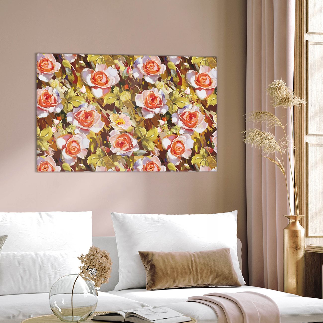 Glas Magnettafel im Querformat Gemalte Rosen