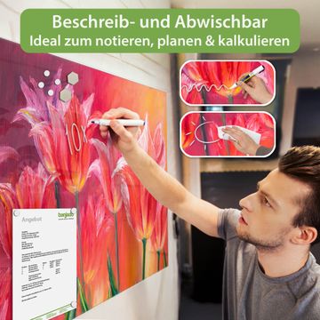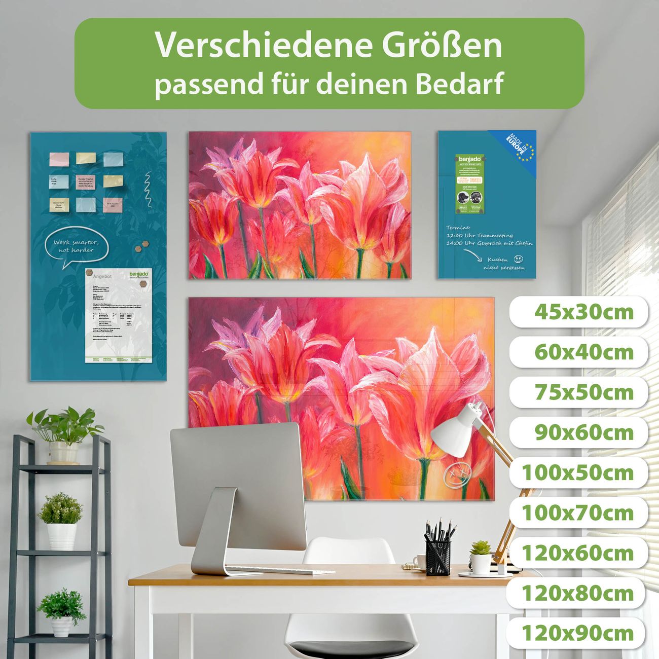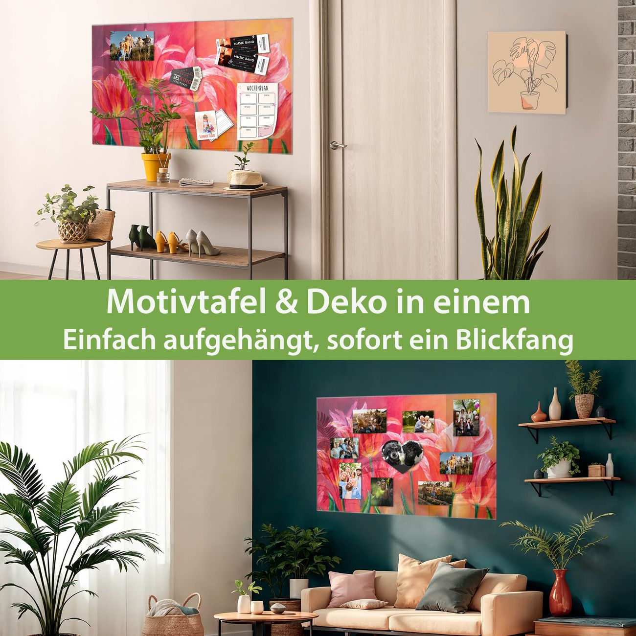 Die banjado Glas Magnettafel mit dem Motiv Motiv Gemalte Tulpen verbindet Funktionalität mit Stil. Sie ersetzt das Zettelchaos durch klare Strukturen und bringt dabei eine warme, natürliche Atmosphäre in Ihr Zuhause. Ob im Büro, in der Küche oder im Eingangsbereich - dieses Design-Board zieht Blicke an und sorgt für Ordnung mit Charakter.