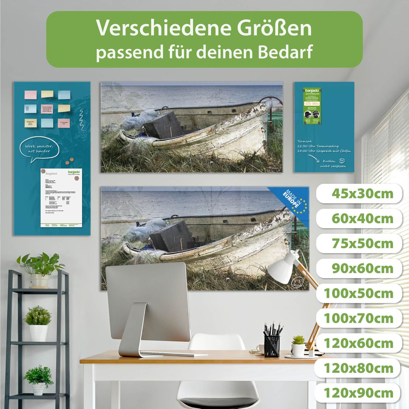 Ein Stück Design, das Ihren Alltag organisiert. Schreiben, heften, inspirieren - alles an einem Ort. Qualität, die man spürt. Montage leicht gemacht. Handwerk mit Herz - veredelt in Sachsen. Einzigartiges Design mit Motiv Motiv Vergessenes Fischerboot Beschreibbare Glasoberfläche, leicht zu reinigen Starke Magnetkraft durch Stahlrückwand Inklusive 4 Neodym-Magneten Flexible Montageoptionen Handveredelt in Sachsen - Qualität, die bleibt