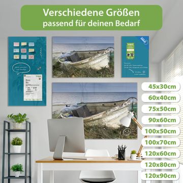 Die banjado Glas Magnettafel mit dem Motiv Motiv Vergessenes Fischerboot verbindet Funktionalität mit Stil. Sie ersetzt das Zettelchaos durch klare Strukturen und bringt dabei eine warme, natürliche Atmosphäre in Ihr Zuhause. Ob im Büro, in der Küche oder im Eingangsbereich - dieses Design-Board zieht Blicke an und sorgt für Ordnung mit Charakter.