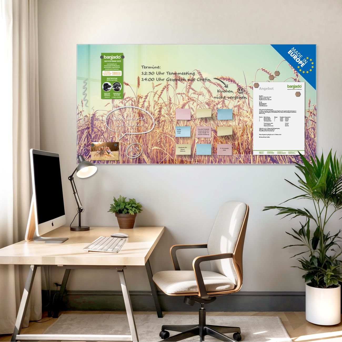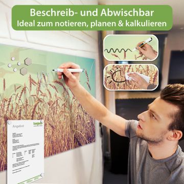 Die banjado Glas Magnettafel mit dem Motiv Motiv Erntezeit verbindet Funktionalität mit Stil. Sie ersetzt das Zettelchaos durch klare Strukturen und bringt dabei eine warme, natürliche Atmosphäre in Ihr Zuhause. Ob im Büro, in der Küche oder im Eingangsbereich - dieses Design-Board zieht Blicke an und sorgt für Ordnung mit Charakter.