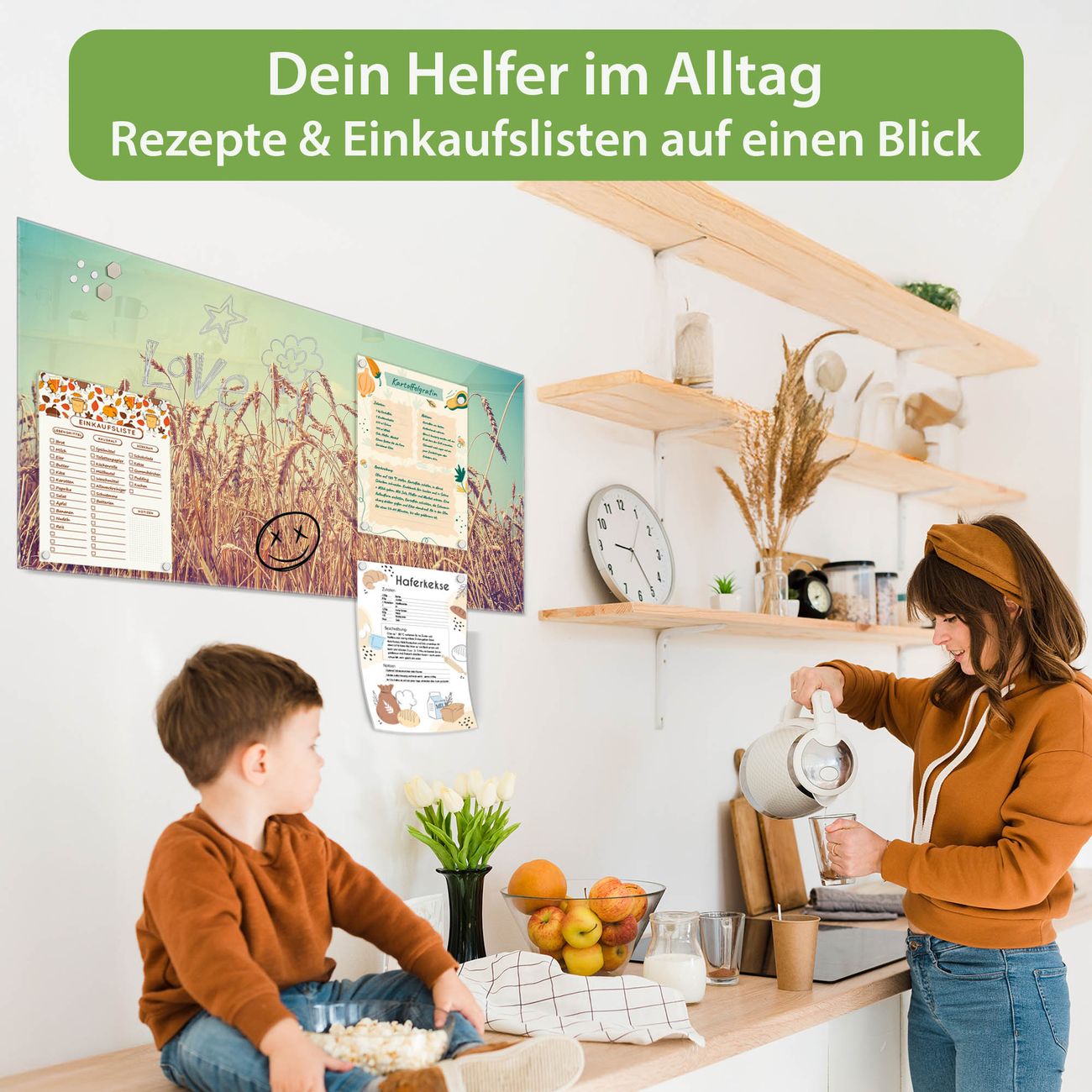 Ein Stück Design, das Ihren Alltag organisiert. Schreiben, heften, inspirieren - alles an einem Ort. Qualität, die man spürt. Montage leicht gemacht. Handwerk mit Herz - veredelt in Sachsen. Einzigartiges Design mit Motiv Motiv Erntezeit Beschreibbare Glasoberfläche, leicht zu reinigen Starke Magnetkraft durch Stahlrückwand Inklusive 4 Neodym-Magneten Flexible Montageoptionen Handveredelt in Sachsen - Qualität, die bleibt