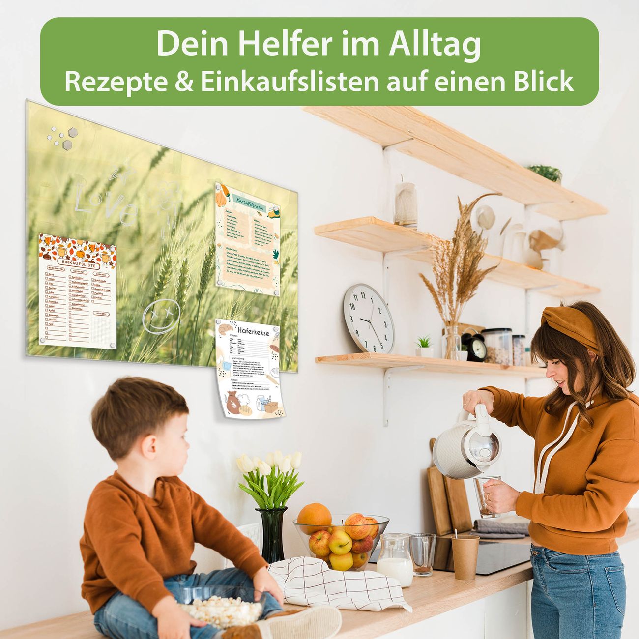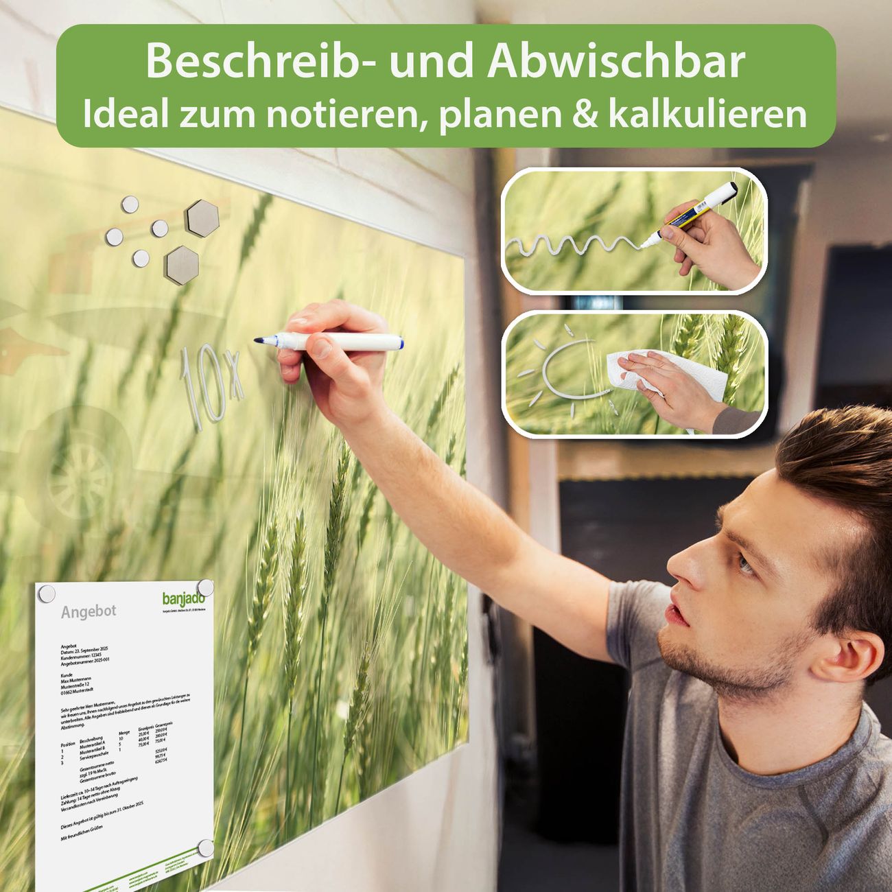 Die banjado Glas Magnettafel mit dem Motiv Motiv Junges Getreide verbindet Funktionalität mit Stil. Sie ersetzt das Zettelchaos durch klare Strukturen und bringt dabei eine warme, natürliche Atmosphäre in Ihr Zuhause. Ob im Büro, in der Küche oder im Eingangsbereich - dieses Design-Board zieht Blicke an und sorgt für Ordnung mit Charakter.