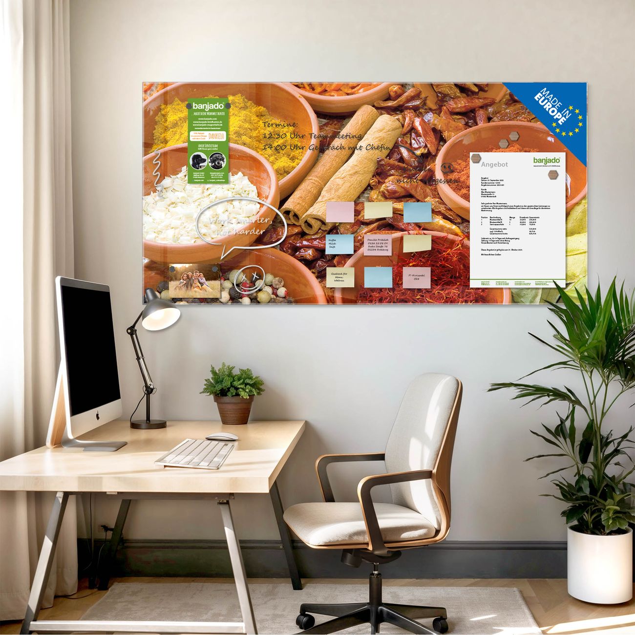 Jede Glas Magnettafel wird in unserer Werkstatt von Hand gefertigt und sorgfältig geprüft. So erhalten Sie ein echtes Qualitätsprodukt, das Funktion und Ästhetik perfekt vereint.?? Warum banjado?