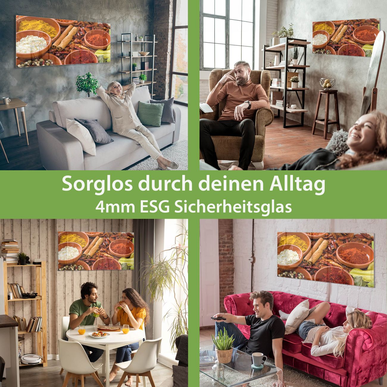- Material: 4mm Sicherheitsglas mit Metallrückwand