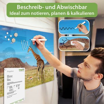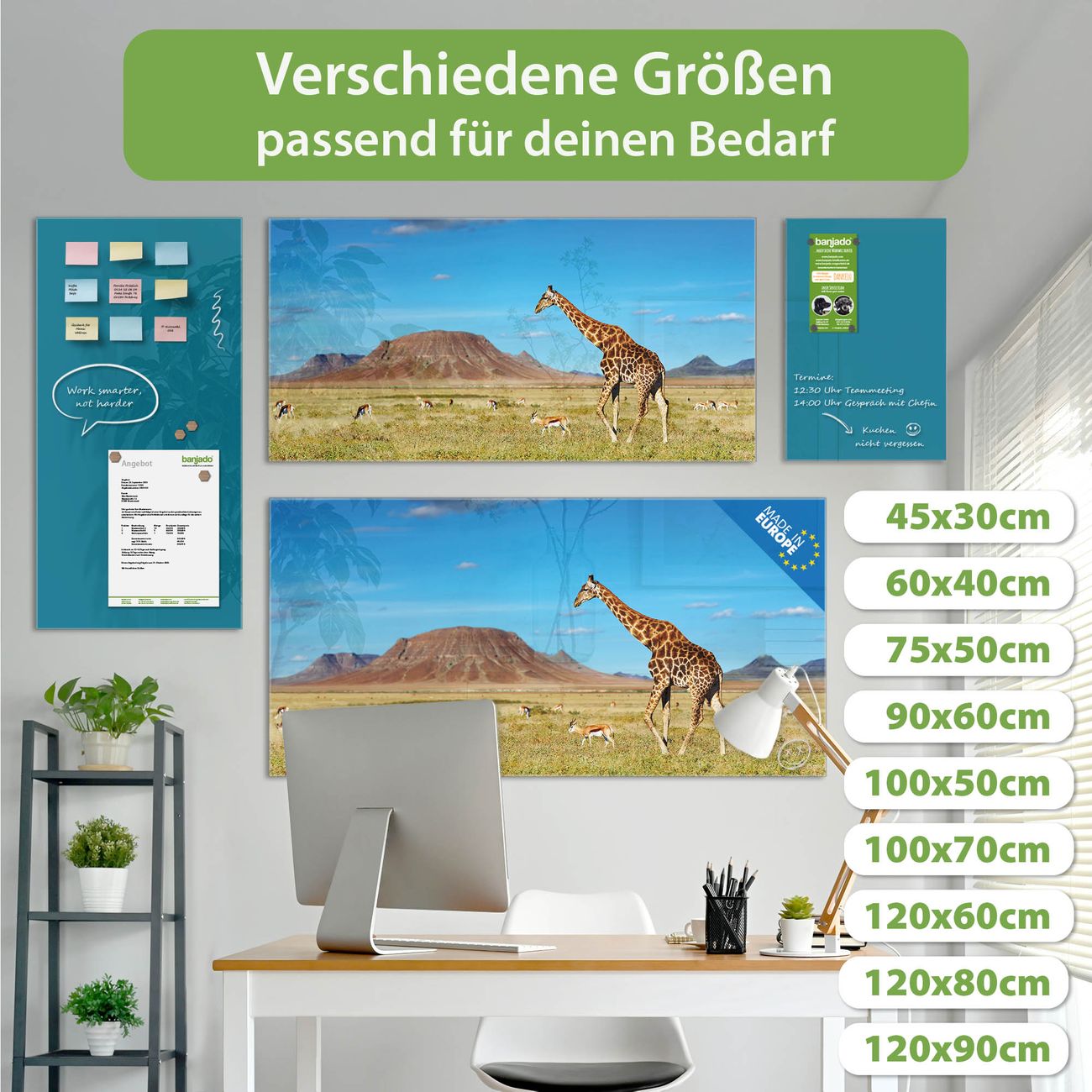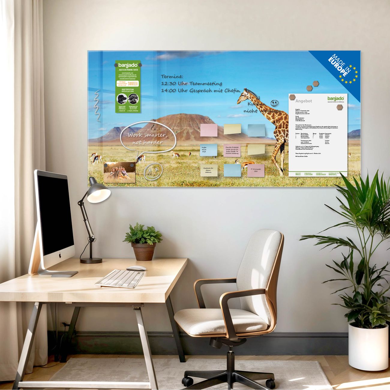 Die banjado Glas Magnettafel mit dem Motiv Motiv Giraffe verbindet Funktionalität mit Stil. Sie ersetzt das Zettelchaos durch klare Strukturen und bringt dabei eine warme, natürliche Atmosphäre in Ihr Zuhause. Ob im Büro, in der Küche oder im Eingangsbereich - dieses Design-Board zieht Blicke an und sorgt für Ordnung mit Charakter.