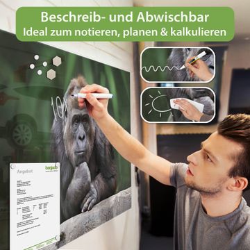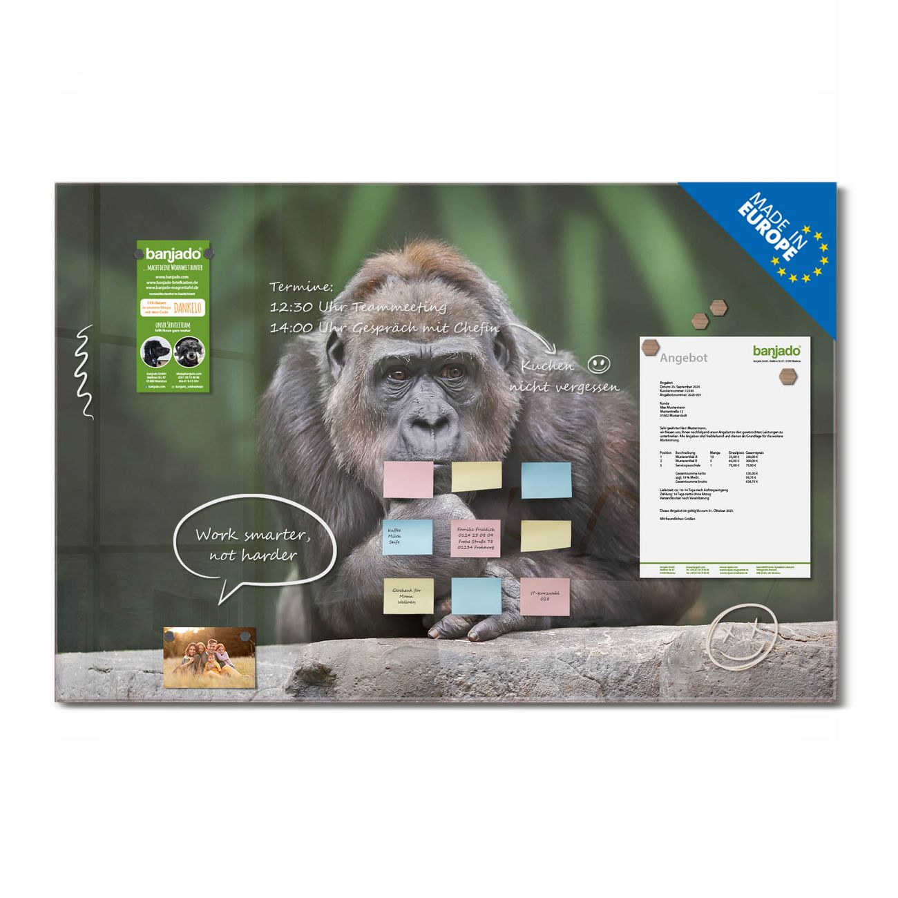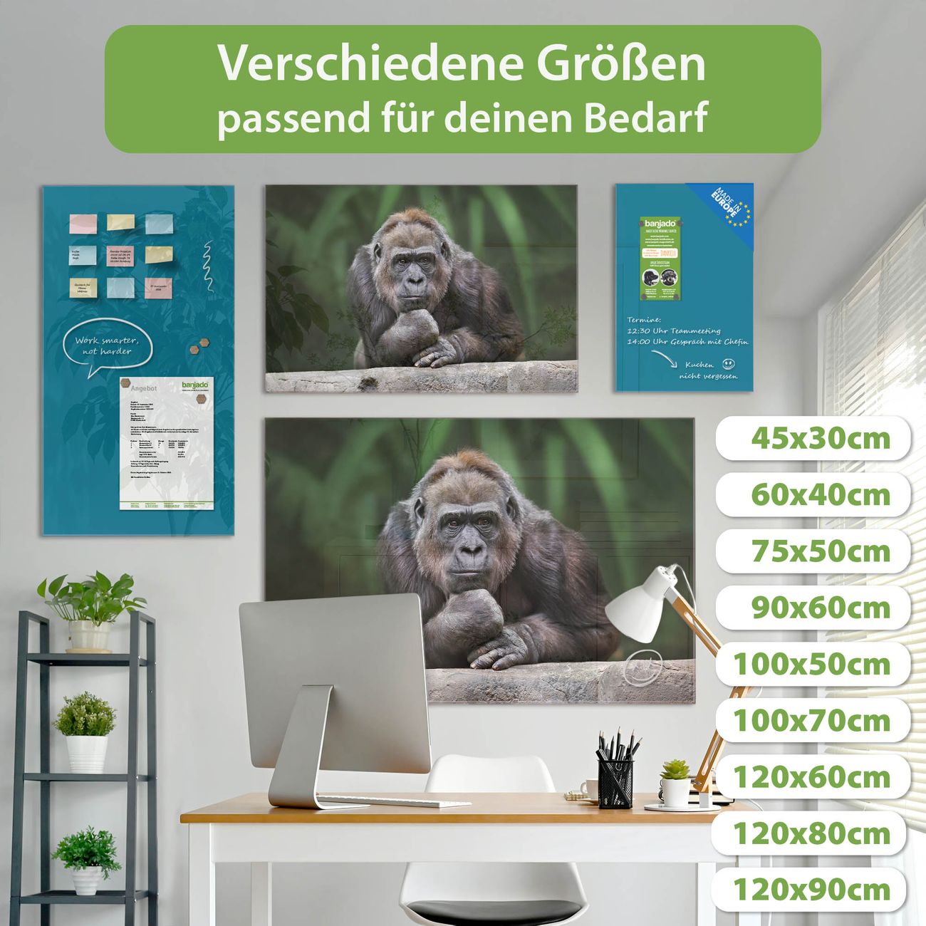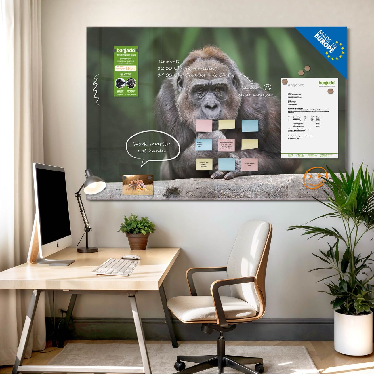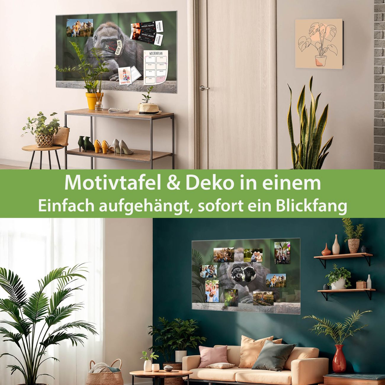 Die banjado Glas Magnettafel mit dem Motiv Motiv Gorilla verbindet Funktionalität mit Stil. Sie ersetzt das Zettelchaos durch klare Strukturen und bringt dabei eine warme, natürliche Atmosphäre in Ihr Zuhause. Ob im Büro, in der Küche oder im Eingangsbereich - dieses Design-Board zieht Blicke an und sorgt für Ordnung mit Charakter.