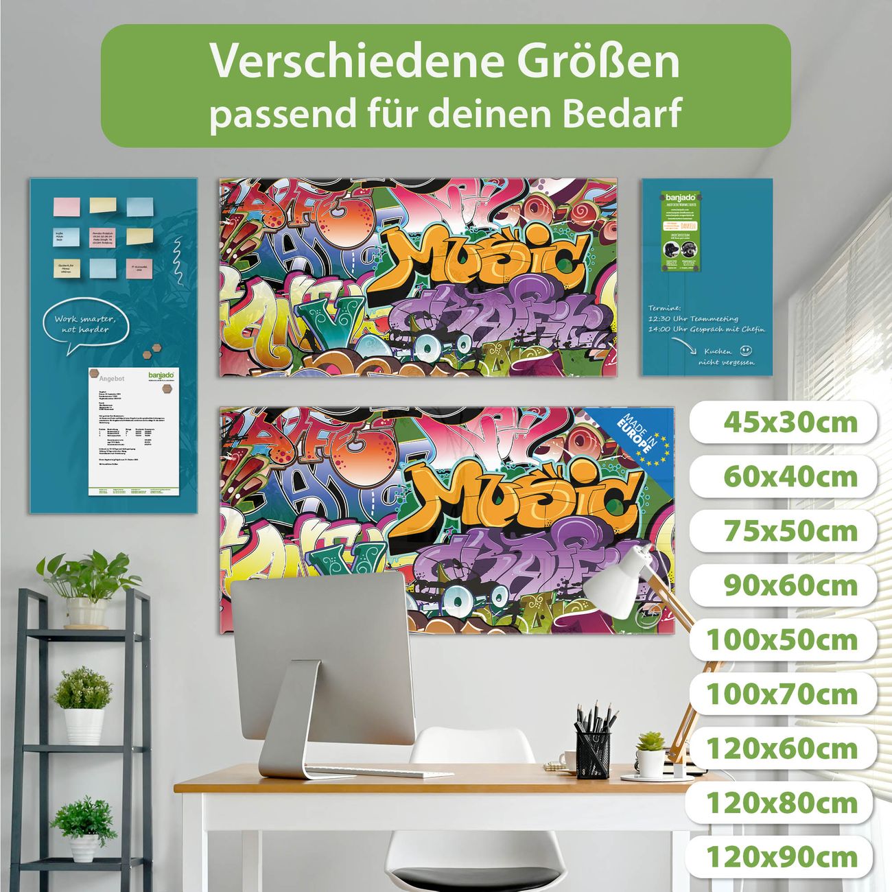 Ein Stück Design, das Ihren Alltag organisiert. Schreiben, heften, inspirieren - alles an einem Ort. Qualität, die man spürt. Montage leicht gemacht. Handwerk mit Herz - veredelt in Sachsen. Einzigartiges Design mit Motiv Motiv Graffiti Beschreibbare Glasoberfläche, leicht zu reinigen Starke Magnetkraft durch Stahlrückwand Inklusive 4 Neodym-Magneten Flexible Montageoptionen Handveredelt in Sachsen - Qualität, die bleibt