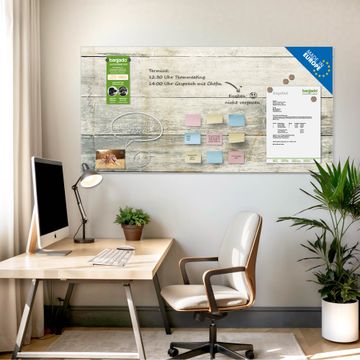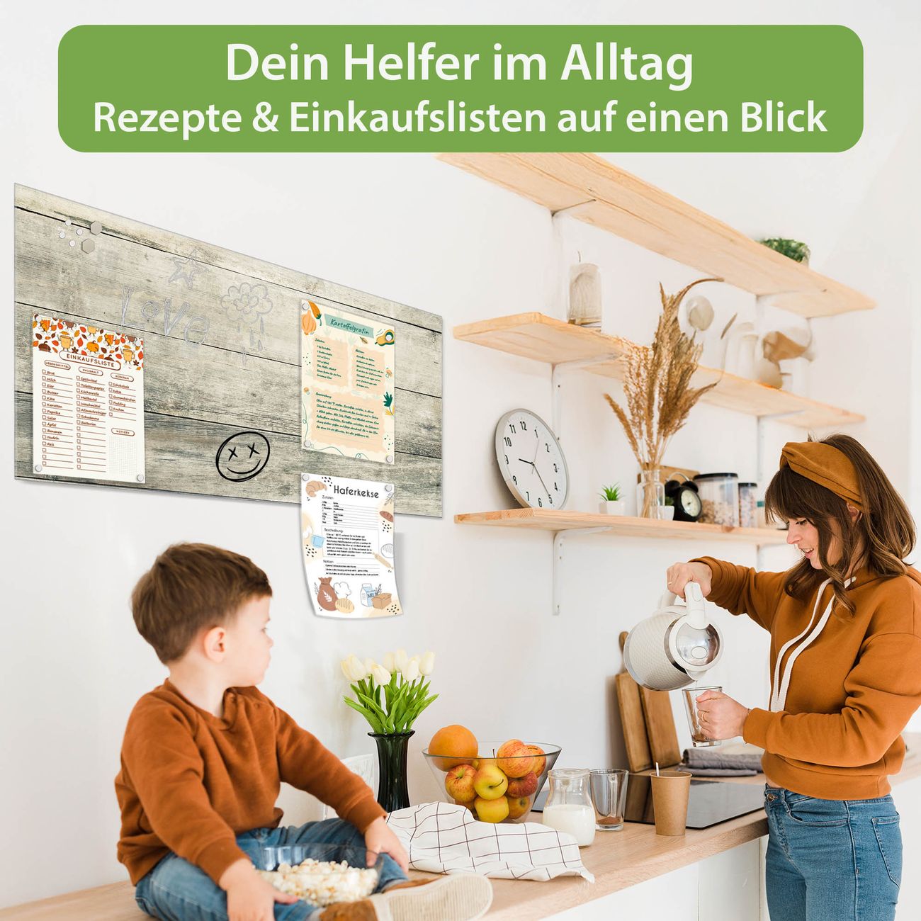 Ein Stück Design, das Ihren Alltag organisiert. Schreiben, heften, inspirieren - alles an einem Ort. Qualität, die man spürt. Montage leicht gemacht. Handwerk mit Herz - veredelt in Sachsen. Einzigartiges Design mit Motiv Motiv Graue Planken Beschreibbare Glasoberfläche, leicht zu reinigen Starke Magnetkraft durch Stahlrückwand Inklusive 4 Neodym-Magneten Flexible Montageoptionen Handveredelt in Sachsen - Qualität, die bleibt