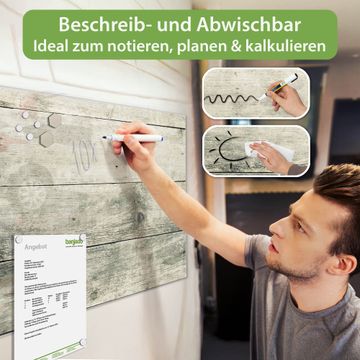 Die banjado Glas Magnettafel mit dem Motiv Motiv Graue Planken verbindet Funktionalität mit Stil. Sie ersetzt das Zettelchaos durch klare Strukturen und bringt dabei eine warme, natürliche Atmosphäre in Ihr Zuhause. Ob im Büro, in der Küche oder im Eingangsbereich - dieses Design-Board zieht Blicke an und sorgt für Ordnung mit Charakter.