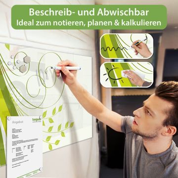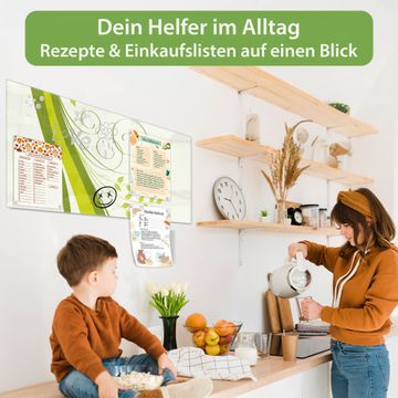 Auf der glatten Glasoberfläche lassen sich Termine, Rezepte oder Notizen ganz einfach mit Kreidestiften festhalten und rückstandslos entfernen. Starke Neodym-Magnete halten Ihre wichtigsten Erinnerungen sicher an Ort und Stelle. So entsteht Ihre ganz persönliche Ideenwand - jeden Tag neu.