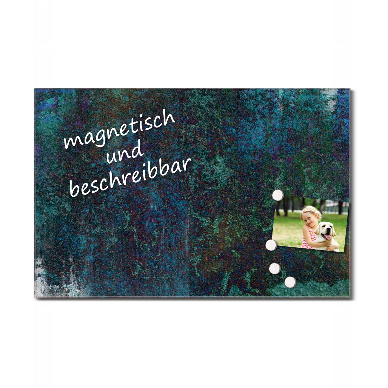 Glas Magnettafel im Querformat Grünblau