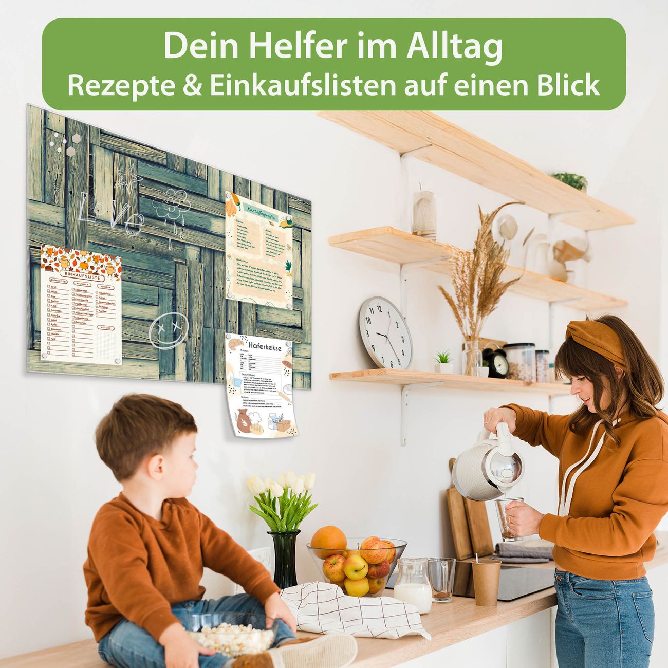 Auf der glatten Glasoberfläche lassen sich Termine, Rezepte oder Notizen ganz einfach mit Kreidestiften festhalten und rückstandslos entfernen. Starke Neodym-Magnete halten Ihre wichtigsten Erinnerungen sicher an Ort und Stelle. So entsteht Ihre ganz persönliche Ideenwand - jeden Tag neu.