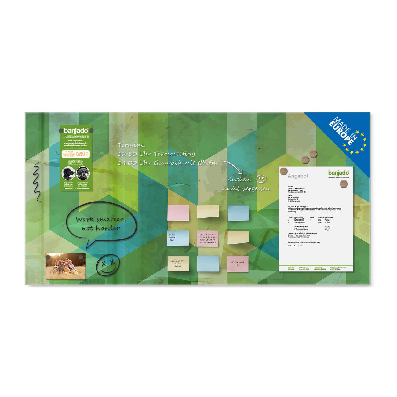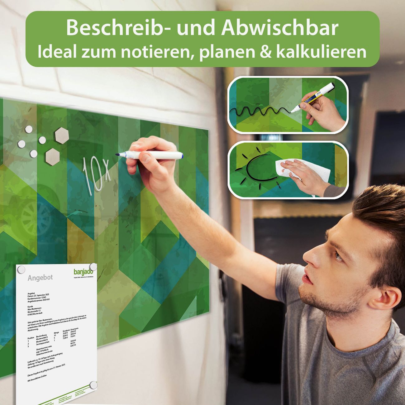 Die banjado Glas Magnettafel mit dem Motiv Motiv Grüne Würfel verbindet Funktionalität mit Stil. Sie ersetzt das Zettelchaos durch klare Strukturen und bringt dabei eine warme, natürliche Atmosphäre in Ihr Zuhause. Ob im Büro, in der Küche oder im Eingangsbereich - dieses Design-Board zieht Blicke an und sorgt für Ordnung mit Charakter.