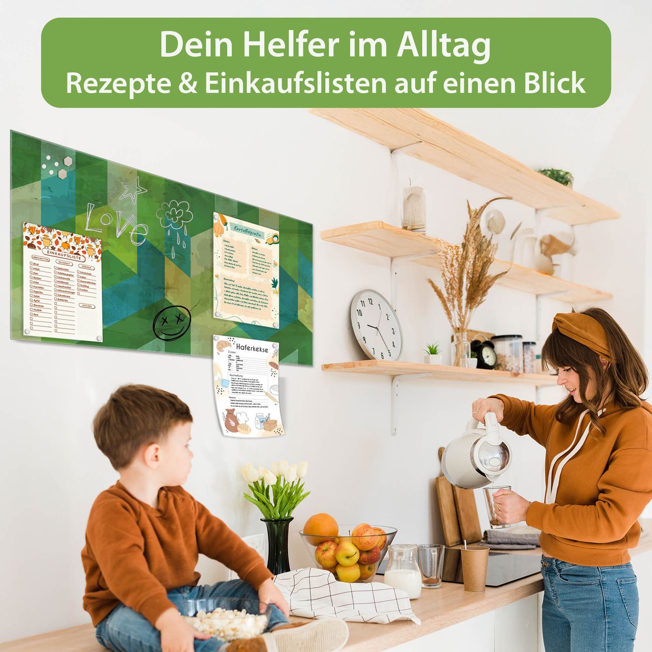 Auf der glatten Glasoberfläche lassen sich Termine, Rezepte oder Notizen ganz einfach mit Kreidestiften festhalten und rückstandslos entfernen. Starke Neodym-Magnete halten Ihre wichtigsten Erinnerungen sicher an Ort und Stelle. So entsteht Ihre ganz persönliche Ideenwand - jeden Tag neu.