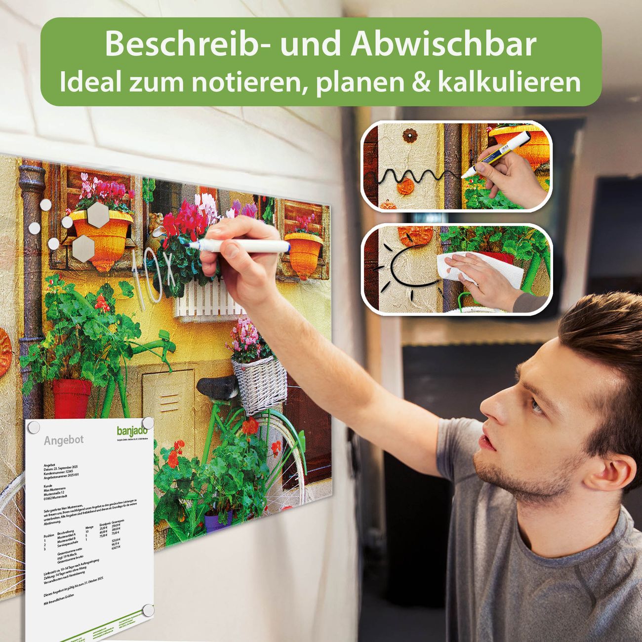 Bitte beachten Sie, dass ausschliessliche spezielle Magnete an der Glastafel haften. Wir empfehlen banjado Neodym Magnete, diese sind durch uns auf Wirksamkeit geprüft.