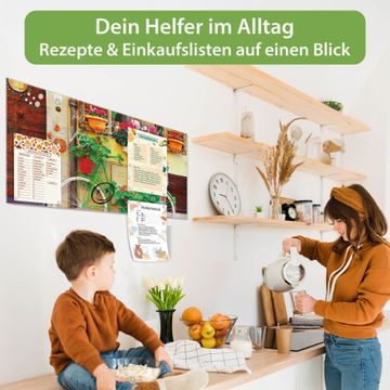 Die banjado Glas Magnettafel mit dem Motiv Motiv Grünes Fahrrad verbindet Funktionalität mit Stil. Sie ersetzt das Zettelchaos durch klare Strukturen und bringt dabei eine warme, natürliche Atmosphäre in Ihr Zuhause. Ob im Büro, in der Küche oder im Eingangsbereich - dieses Design-Board zieht Blicke an und sorgt für Ordnung mit Charakter.