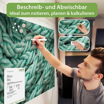 Die banjado Glas Magnettafel mit dem Motiv Motiv Grünes Tau verbindet Funktionalität mit Stil. Sie ersetzt das Zettelchaos durch klare Strukturen und bringt dabei eine warme, natürliche Atmosphäre in Ihr Zuhause. Ob im Büro, in der Küche oder im Eingangsbereich - dieses Design-Board zieht Blicke an und sorgt für Ordnung mit Charakter.