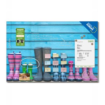 Die banjado Glas Magnettafel mit dem Motiv Motiv Gummistiefel verbindet Funktionalität mit Stil. Sie ersetzt das Zettelchaos durch klare Strukturen und bringt dabei eine warme, natürliche Atmosphäre in Ihr Zuhause. Ob im Büro, in der Küche oder im Eingangsbereich - dieses Design-Board zieht Blicke an und sorgt für Ordnung mit Charakter.