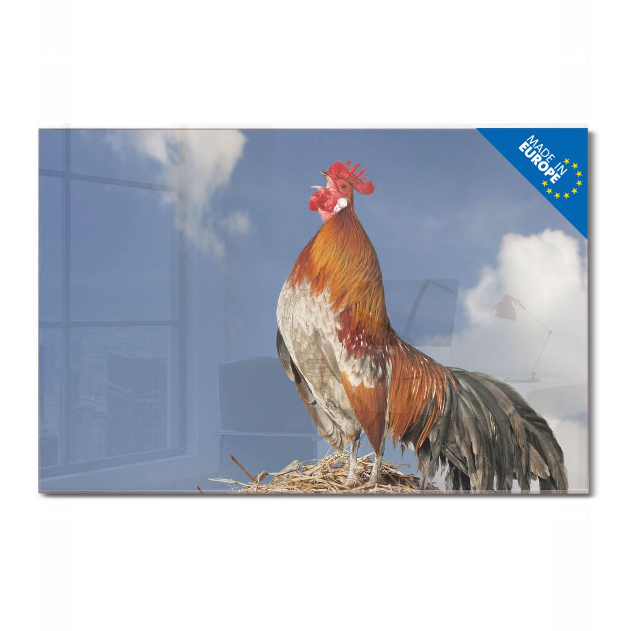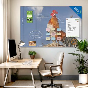 Glas Magnettafel im Querformat Motiv Hahn