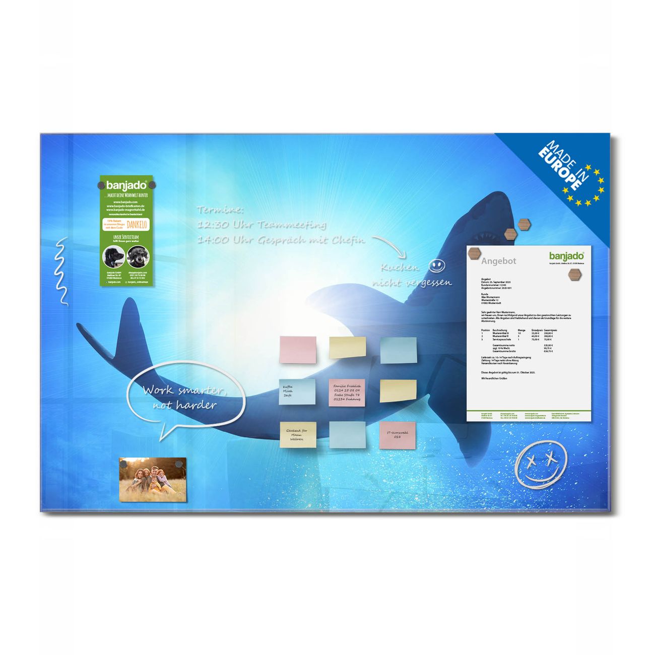 Die banjado Glas Magnettafel mit dem Motiv Motiv Hai verbindet Funktionalität mit Stil. Sie ersetzt das Zettelchaos durch klare Strukturen und bringt dabei eine warme, natürliche Atmosphäre in Ihr Zuhause. Ob im Büro, in der Küche oder im Eingangsbereich - dieses Design-Board zieht Blicke an und sorgt für Ordnung mit Charakter.