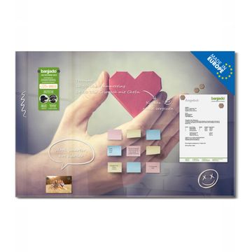 Glas Magnettafel im Querformat Motiv Hand Aufs Herz
