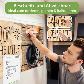 Die banjado Glas Magnettafel mit dem Motiv Motiv Happy Day verbindet Funktionalität mit Stil. Sie ersetzt das Zettelchaos durch klare Strukturen und bringt dabei eine warme, natürliche Atmosphäre in Ihr Zuhause. Ob im Büro, in der Küche oder im Eingangsbereich - dieses Design-Board zieht Blicke an und sorgt für Ordnung mit Charakter.