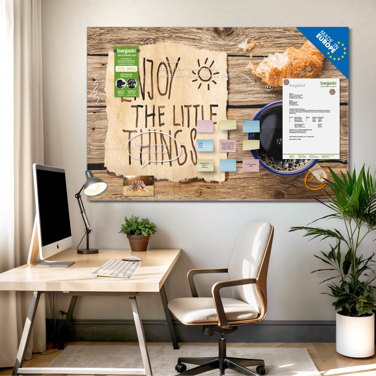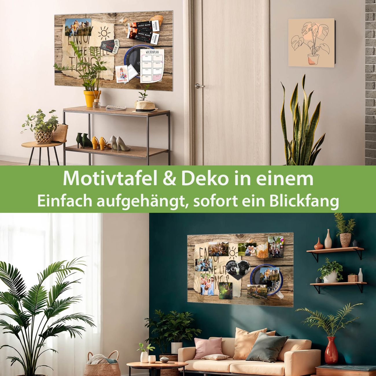 Die banjado Glas Magnettafel mit dem Motiv Motiv Happy Day verbindet Funktionalität mit Stil. Sie ersetzt das Zettelchaos durch klare Strukturen und bringt dabei eine warme, natürliche Atmosphäre in Ihr Zuhause. Ob im Büro, in der Küche oder im Eingangsbereich - dieses Design-Board zieht Blicke an und sorgt für Ordnung mit Charakter.