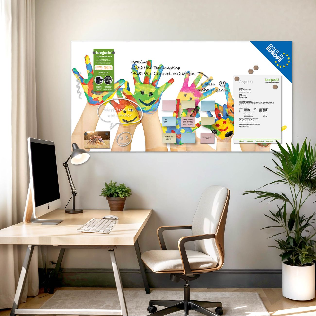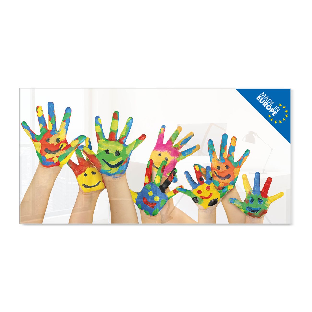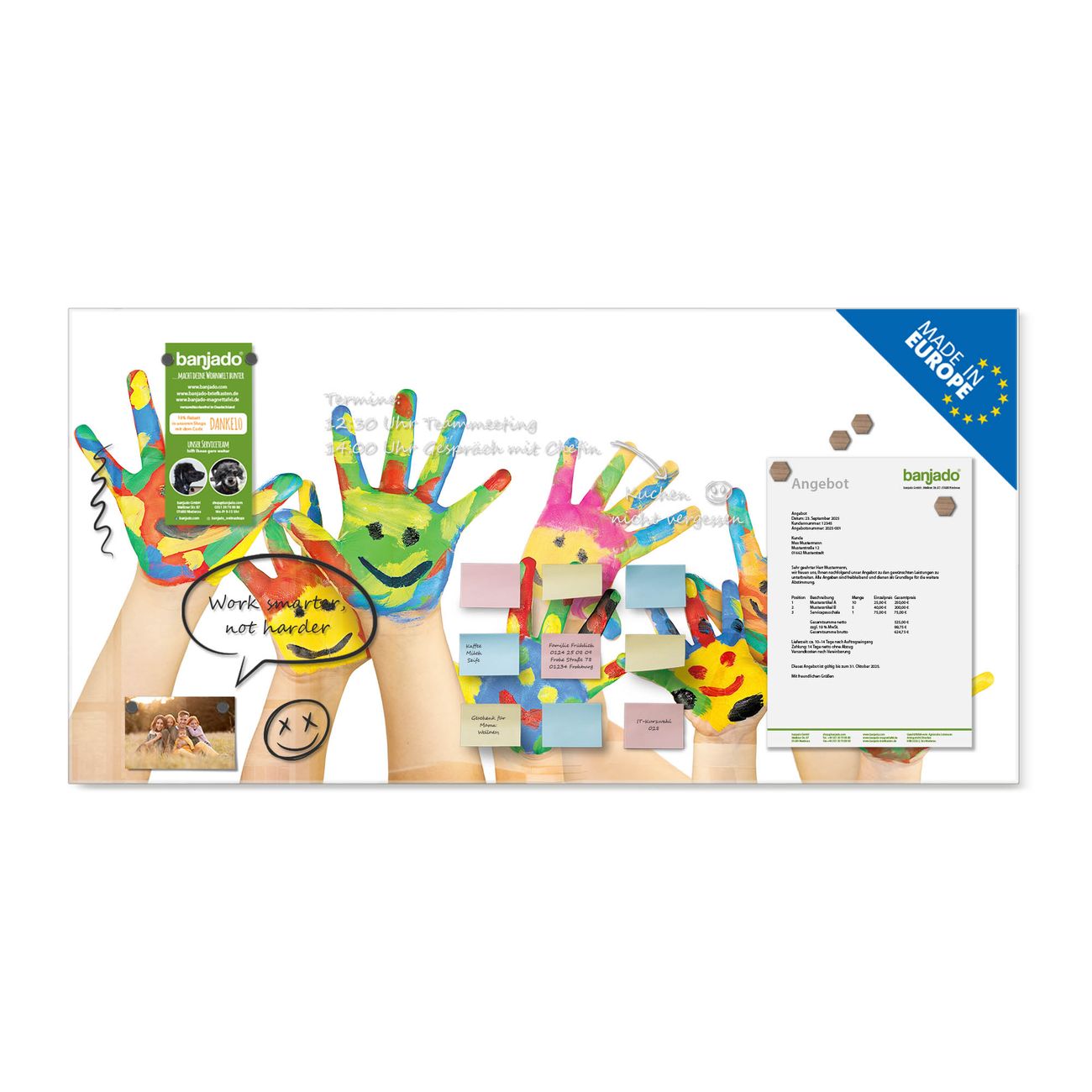 Glas Magnettafel im Querformat Motiv Happy Hands