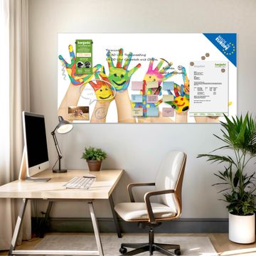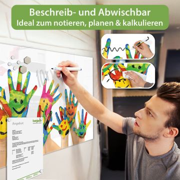 Die banjado Glas Magnettafel mit dem Motiv Motiv Happy Hands verbindet Funktionalität mit Stil. Sie ersetzt das Zettelchaos durch klare Strukturen und bringt dabei eine warme, natürliche Atmosphäre in Ihr Zuhause. Ob im Büro, in der Küche oder im Eingangsbereich - dieses Design-Board zieht Blicke an und sorgt für Ordnung mit Charakter.