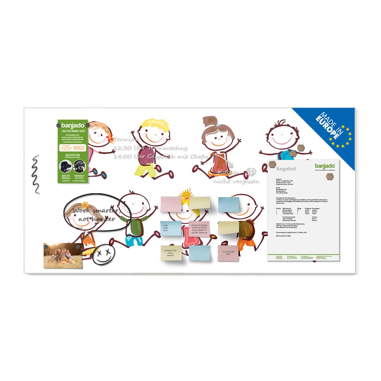 Glas Magnettafel im Querformat Motiv Happy Kids