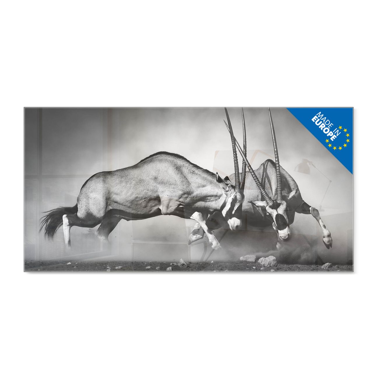 - Material: 4mm Sicherheitsglas mit Metallrückwand