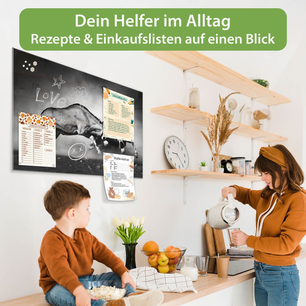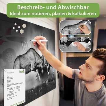 Auf der glatten Glasoberfläche lassen sich Termine, Rezepte oder Notizen ganz einfach mit Kreidestiften festhalten und rückstandslos entfernen. Starke Neodym-Magnete halten Ihre wichtigsten Erinnerungen sicher an Ort und Stelle. So entsteht Ihre ganz persönliche Ideenwand - jeden Tag neu.