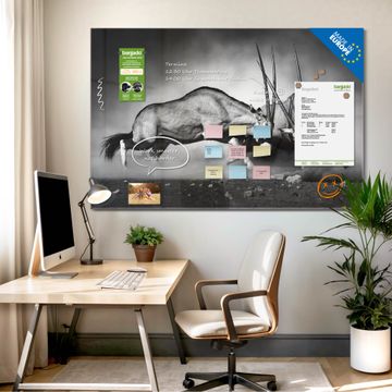 Gefertigt aus gehärtetem Sicherheitsglas mit einer magnetischen Rückwand aus Stahl überzeugt diese Magnettafel durch Stabilität und Langlebigkeit. Die Oberfläche bleibt dauerhaft brillant und pflegeleicht, selbst bei täglicher Nutzung.