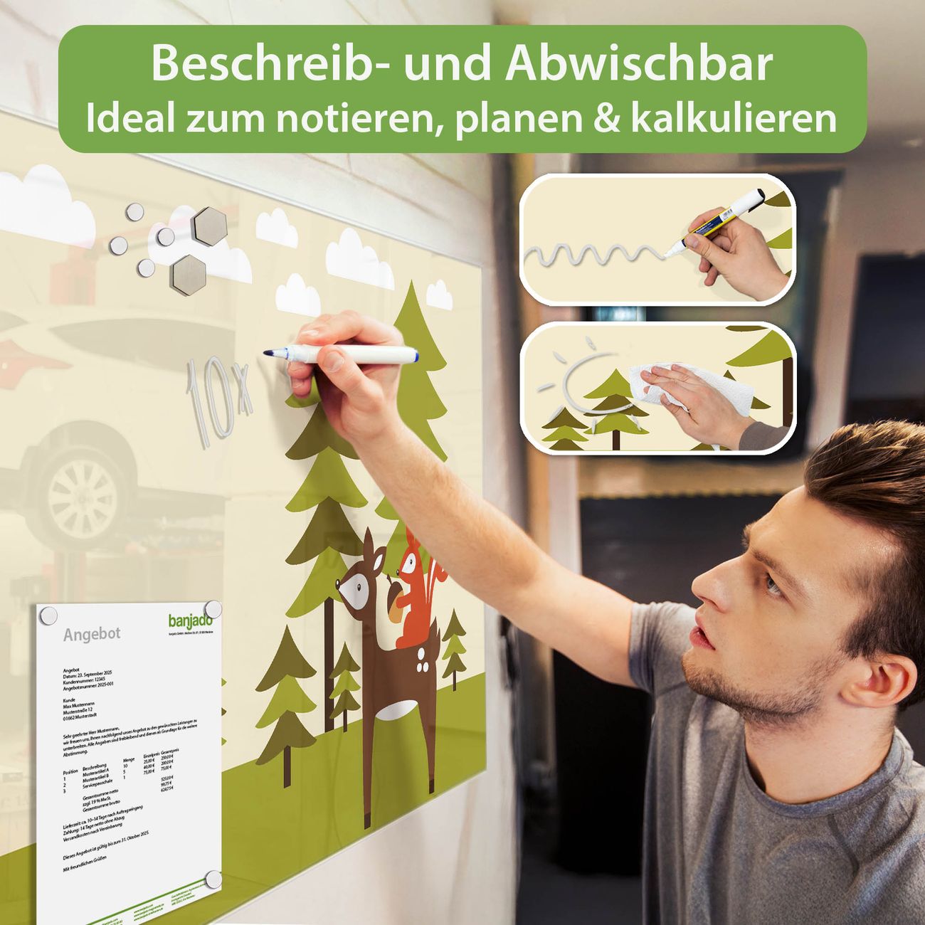 Bitte beachten Sie, dass ausschliessliche spezielle Magnete an der Glastafel haften. Wir empfehlen banjado Neodym Magnete, diese sind durch uns auf Wirksamkeit geprüft.