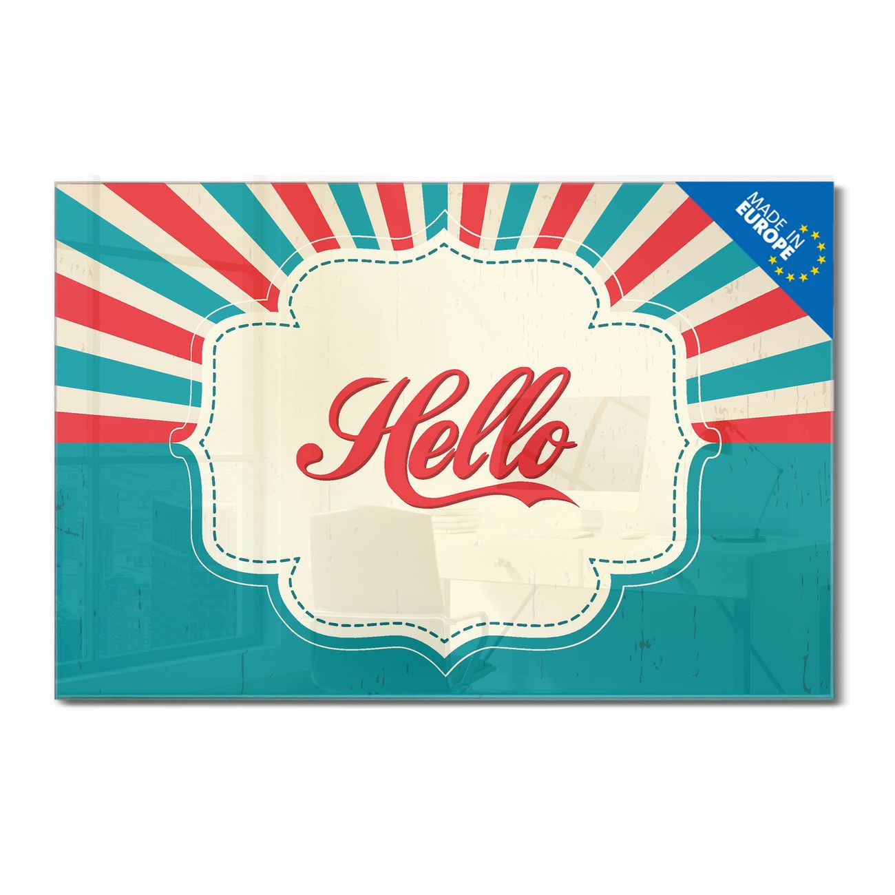 Glas Magnettafel im Querformat Motiv Hello
