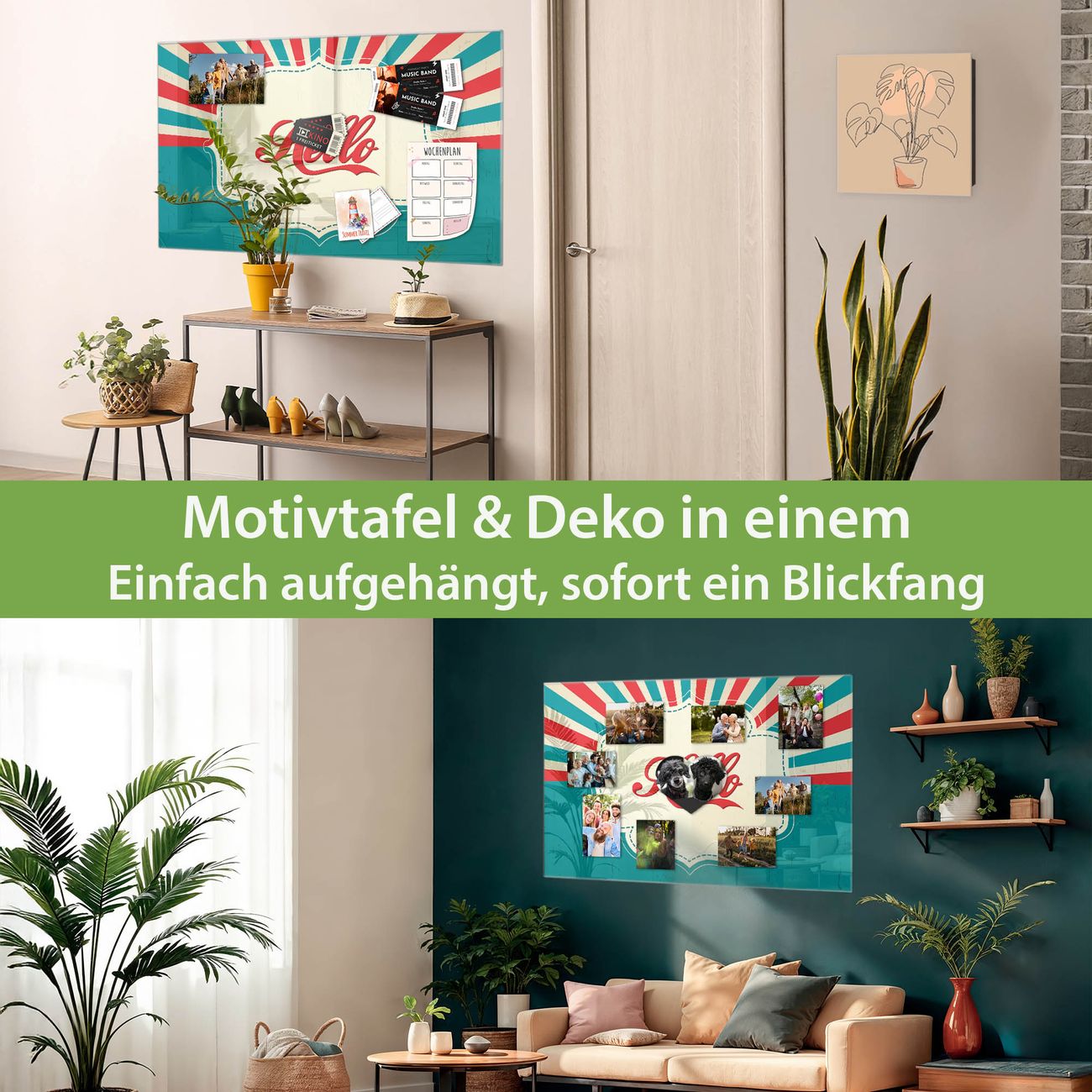 Die banjado Glas Magnettafel mit dem Motiv Motiv Hello verbindet Funktionalität mit Stil. Sie ersetzt das Zettelchaos durch klare Strukturen und bringt dabei eine warme, natürliche Atmosphäre in Ihr Zuhause. Ob im Büro, in der Küche oder im Eingangsbereich - dieses Design-Board zieht Blicke an und sorgt für Ordnung mit Charakter.