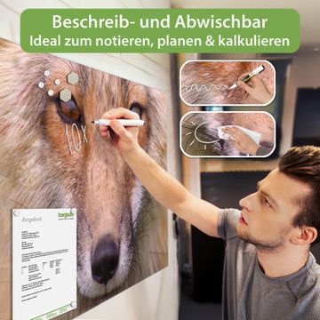 Die banjado Glas Magnettafel mit dem Motiv Motiv Henryk verbindet Funktionalität mit Stil. Sie ersetzt das Zettelchaos durch klare Strukturen und bringt dabei eine warme, natürliche Atmosphäre in Ihr Zuhause. Ob im Büro, in der Küche oder im Eingangsbereich - dieses Design-Board zieht Blicke an und sorgt für Ordnung mit Charakter.
