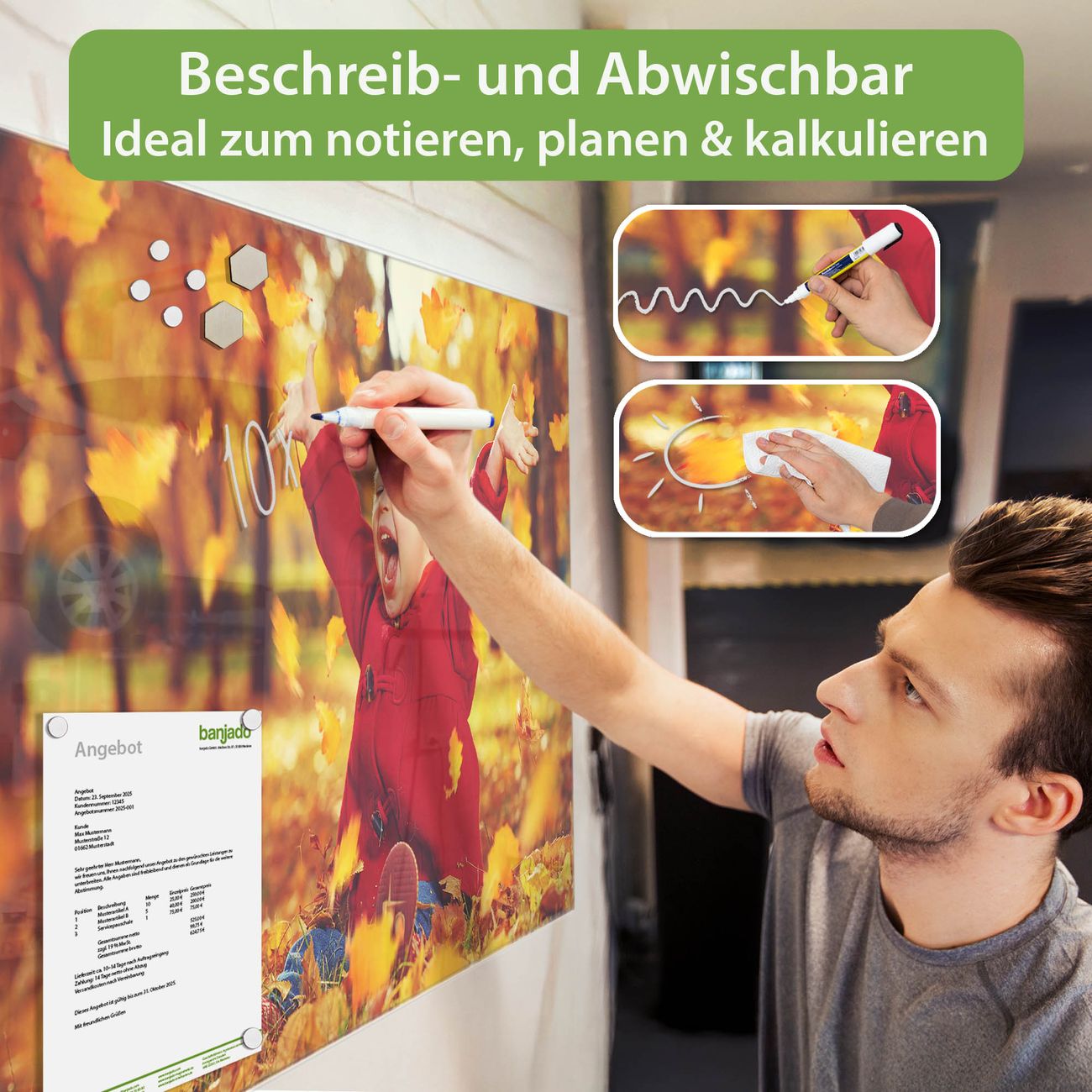 Die banjado Glas Magnettafel mit dem Motiv Motiv Herbstfreude verbindet Funktionalität mit Stil. Sie ersetzt das Zettelchaos durch klare Strukturen und bringt dabei eine warme, natürliche Atmosphäre in Ihr Zuhause. Ob im Büro, in der Küche oder im Eingangsbereich - dieses Design-Board zieht Blicke an und sorgt für Ordnung mit Charakter.