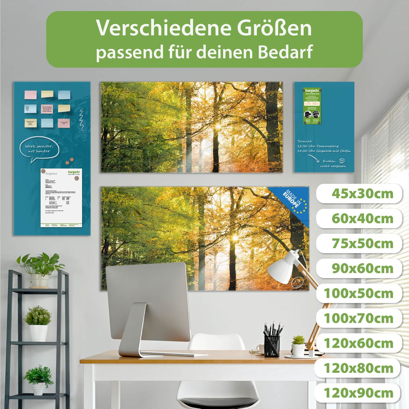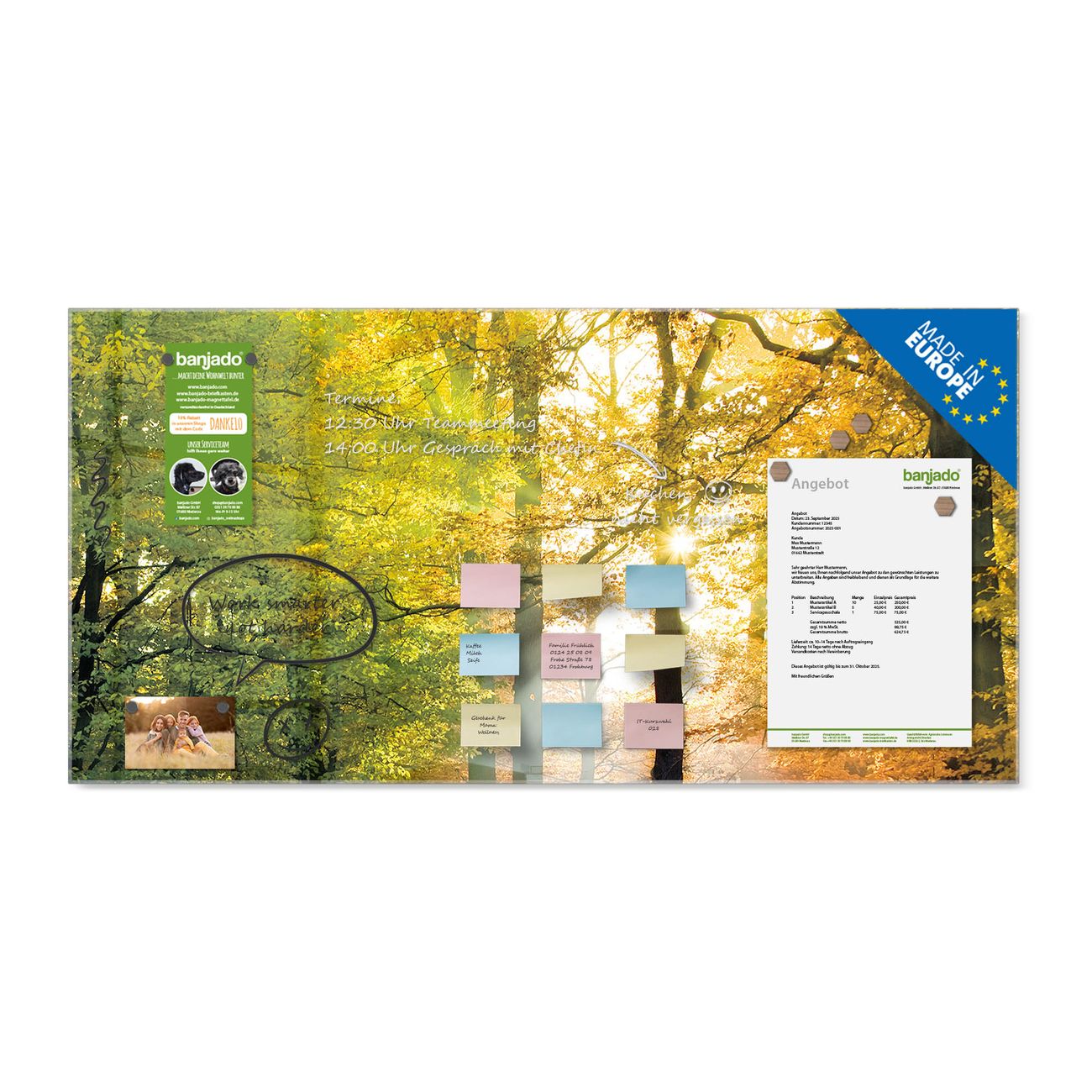 Jede Glas Magnettafel wird in unserer Werkstatt von Hand gefertigt und sorgfältig geprüft. So erhalten Sie ein echtes Qualitätsprodukt, das Funktion und Ästhetik perfekt vereint.?? Warum banjado?