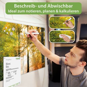 Die banjado Glas Magnettafel mit dem Motiv Motiv Herbstwald verbindet Funktionalität mit Stil. Sie ersetzt das Zettelchaos durch klare Strukturen und bringt dabei eine warme, natürliche Atmosphäre in Ihr Zuhause. Ob im Büro, in der Küche oder im Eingangsbereich - dieses Design-Board zieht Blicke an und sorgt für Ordnung mit Charakter.