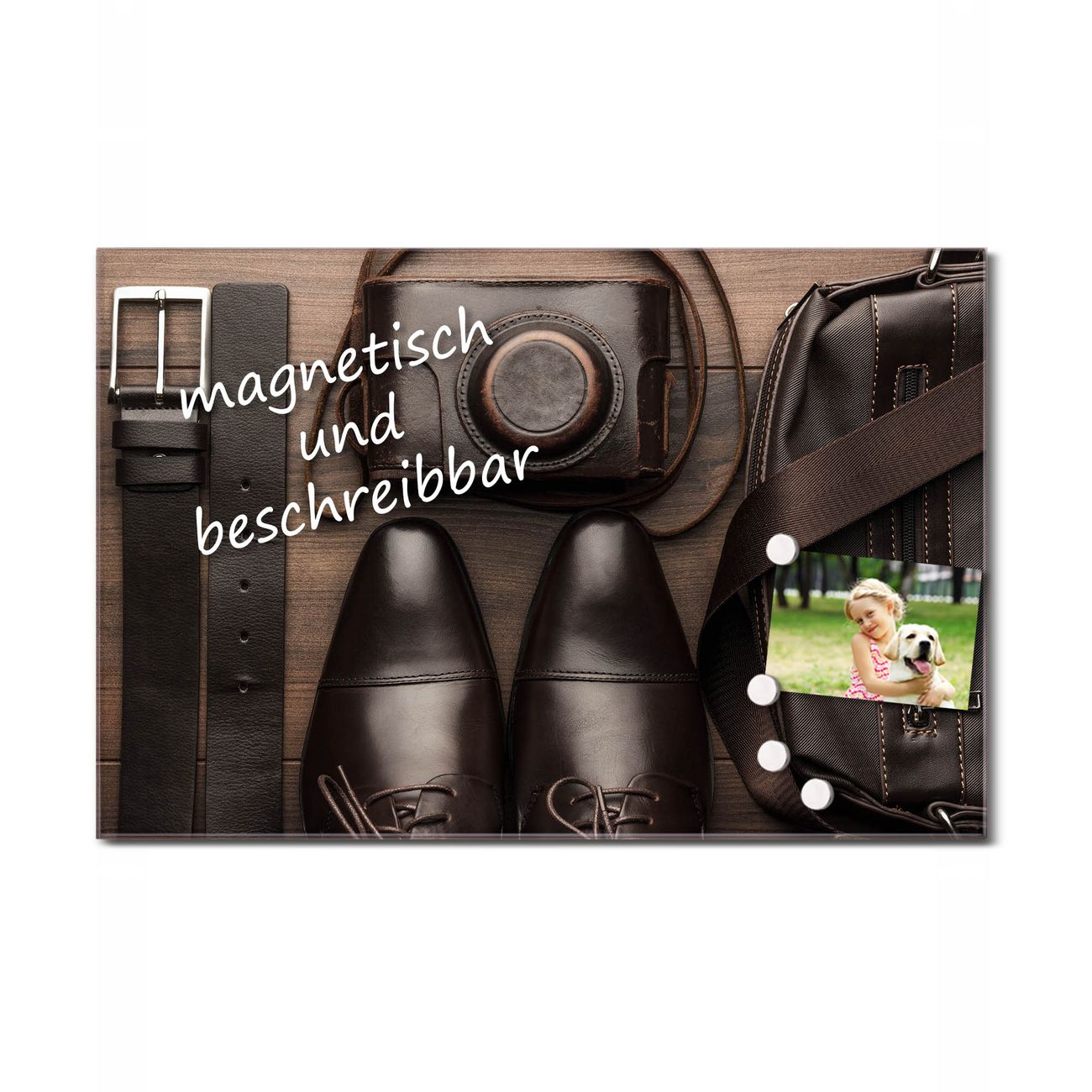 Glas Magnettafel im Querformat Herrenausstatter