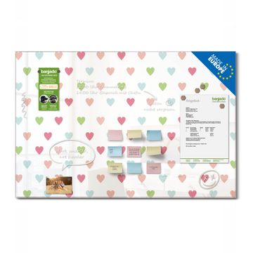 Glas Magnettafel im Querformat Motiv Herzen Auf Weiß