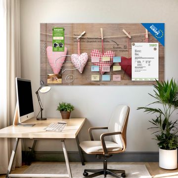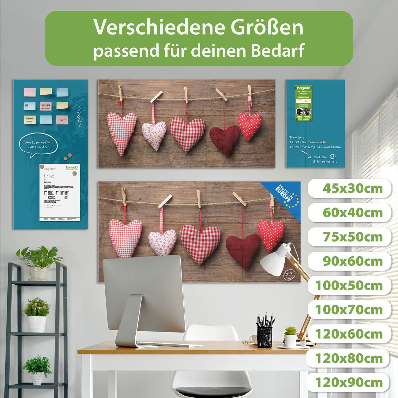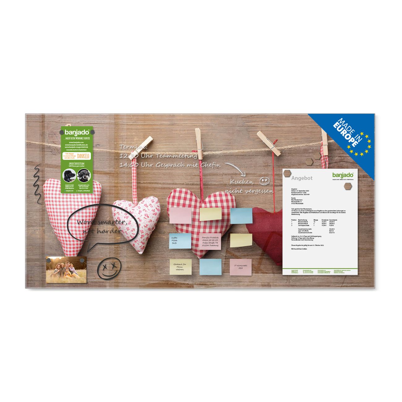 Die banjado Glas Magnettafel mit dem Motiv Motiv Herzen verbindet Funktionalität mit Stil. Sie ersetzt das Zettelchaos durch klare Strukturen und bringt dabei eine warme, natürliche Atmosphäre in Ihr Zuhause. Ob im Büro, in der Küche oder im Eingangsbereich - dieses Design-Board zieht Blicke an und sorgt für Ordnung mit Charakter.